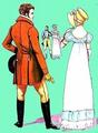 всего на три пуговицы. На кавалере узкие панталоны с завышенным поясом,